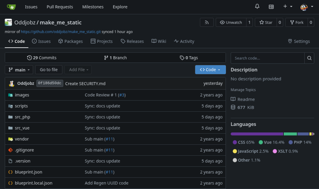 It looks and feels very mich like GitHub, maybe a little smoother and certainly a lot quicker. I’m running Gitea on a Raspberry Pi 5 inside a container using the binary install on a Debian base with the SqLite database. It FLIES compared to online hosted solutions.